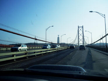 Grote hangbrug in Lissabon Tussen de zee en de baai. |