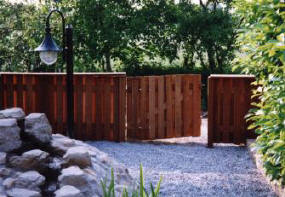 Schutting en poort opgebouwd uit Bankirai latten van 10x100 mm.