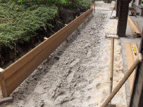 met onderliggers (45x70) op stoeptegels, zodat er altijd ventilatie